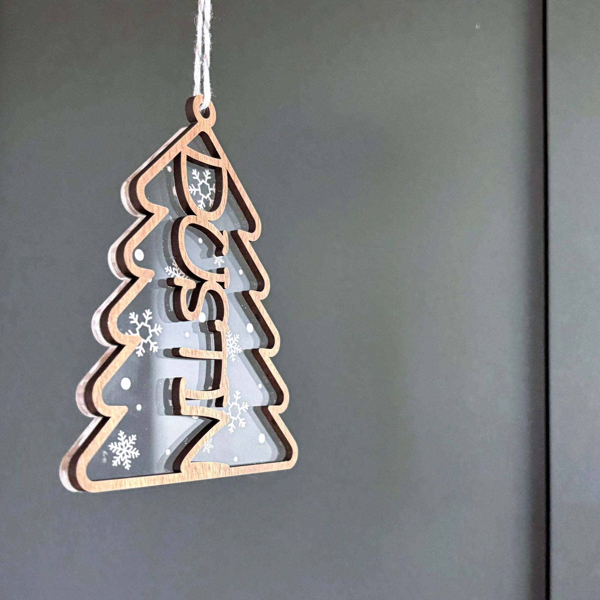 Surprise your loved ones with this unique personalised wood tree with snowflake backing Christmas ornament.